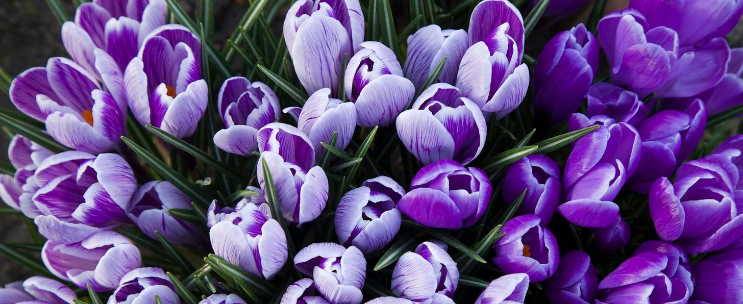 The crocuses are poking up slender purple necks this week in Seattle, braving the changeable weather. It’s a challenge to hold the beauty of early spring flowers with all that is hard and heavy—and the uncertainty of what lies ahead. The world is going through some stuff!